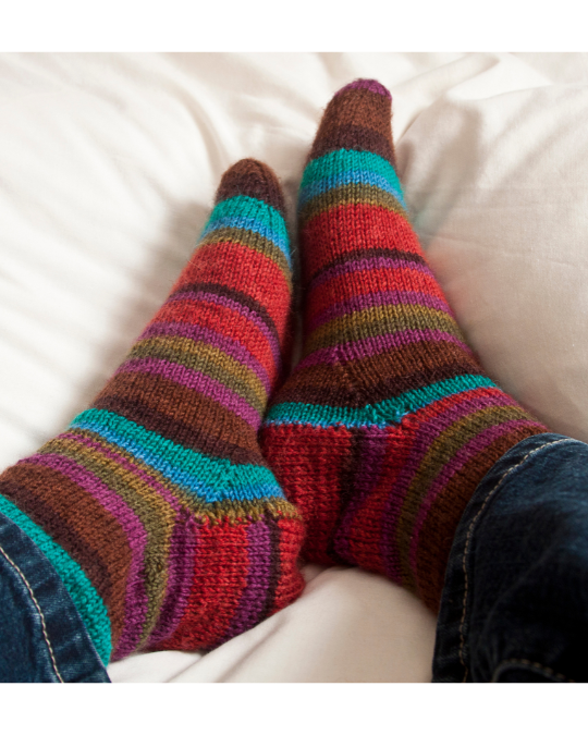 Mit bunten, gestrickten Wollsocken verabschieden Sie sich mit einem Lächeln von kalten Füssen.